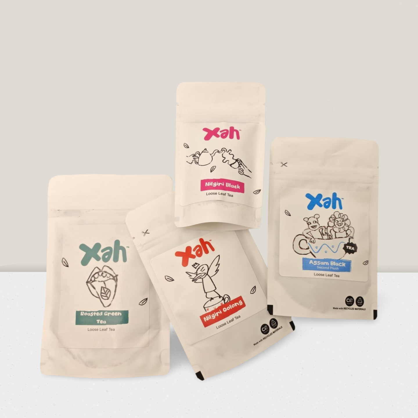 Enjoy 20g packs of roasted green tea, oolong, Nilgiri orthodox black tea, and Assam black tea—each bursting with amazing aromas and flavors.